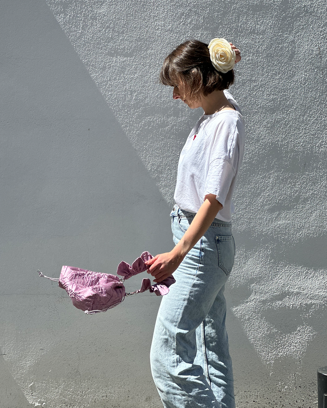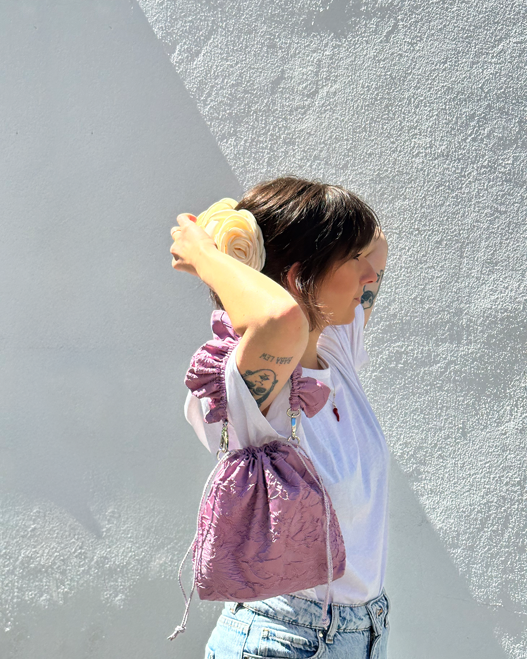 Ręcznie wykonana przez Basię torebka o uroczym kształcie kwiatko-pierożka <3